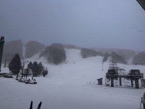 昨晩から雪がしんしんと降り続け、昨日とはまた違った雪質でスキーが楽しめそうです。